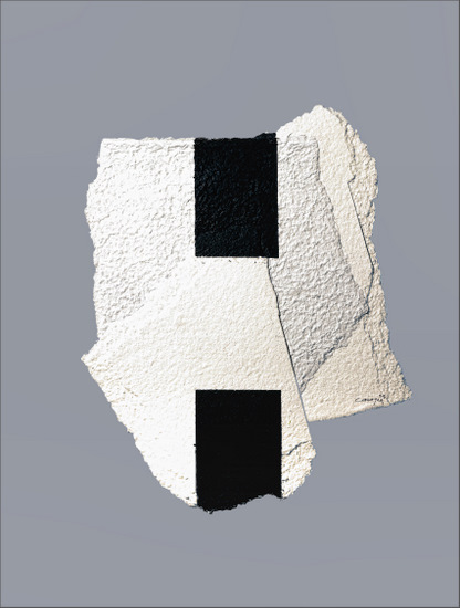 Construcción en papel hecho a mano y pintado al óleo encolado a tabla