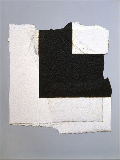 Construcción en papel hecho a mano y pintado al óleo encolado a tabla