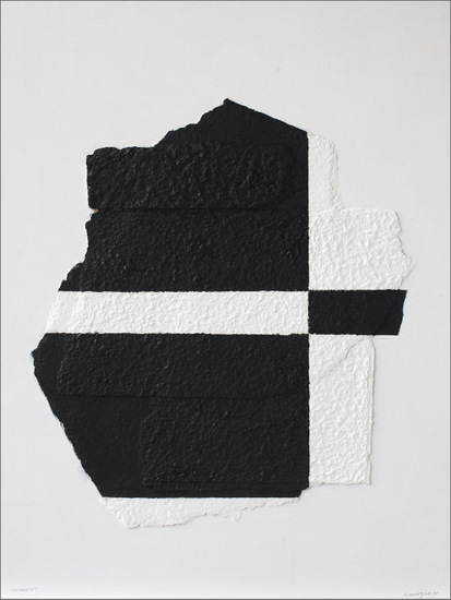 Construcción en papel hecho a mano y pintado al óleo encolado a tabla