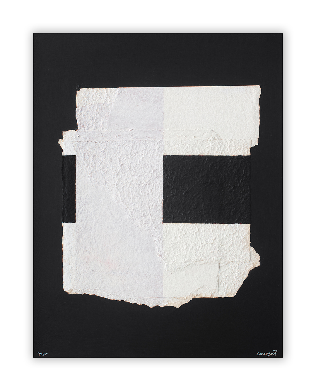 Construcción en papel hecho a mano y pintado al óleo encolado a tabla