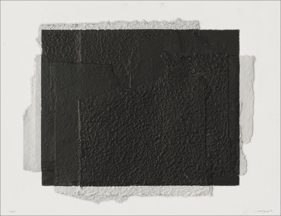 Construcción en papel hecho a mano y pintado al óleo encolado a tabla