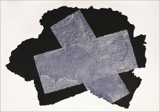 Construcción en papel hecho a mano y pintado al óleo encolado a tabla