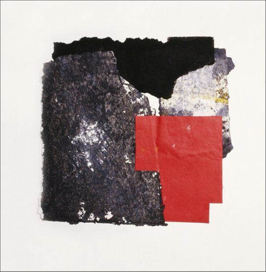Construcción en papel hecho a mano y pintado al óleo con collage de pan de oro encolado a cartón