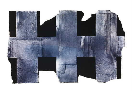 Construcción en papel hecho a mano y pintado al óleo encolado a tabla
