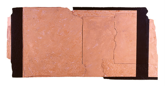 Construcción en papel hecho a mano y pintado al óleo encolado a tabla
