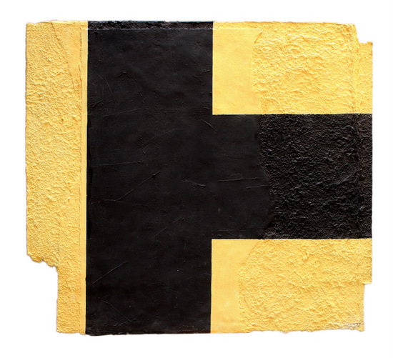 Construcción en papel hecho a mano y pintado al óleo encolado a tabla