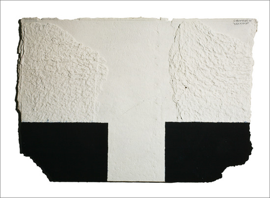 Construcción en papel hecho a mano y pintado al óleo encolado a tabla