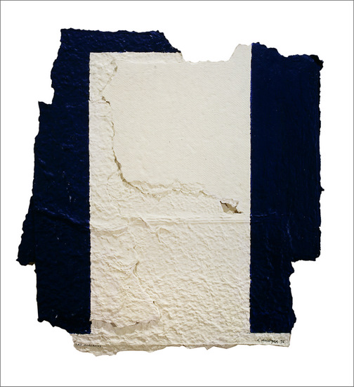 Construcción en papel hecho a mano y pintado al óleo encolado a tabla