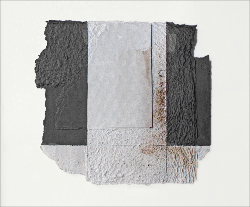 Construcción en papel hecho a mano y pintado al óleo encolado a tabla