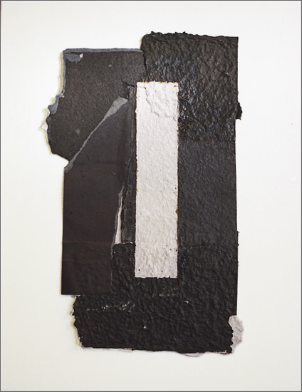 Construcción en papel hecho a mano y pintado al óleo encolado a tabla