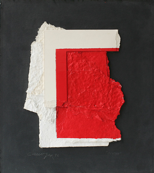 Construcción en papel hecho a mano y pintado al óleo encolado a cartón