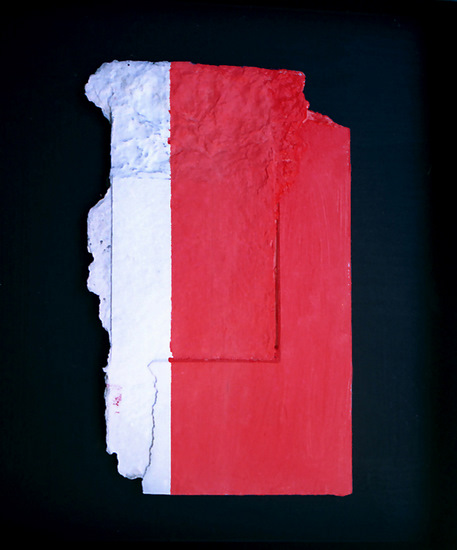 Construcción en papel hecho a mano y pintado al óleo encolado a cartón