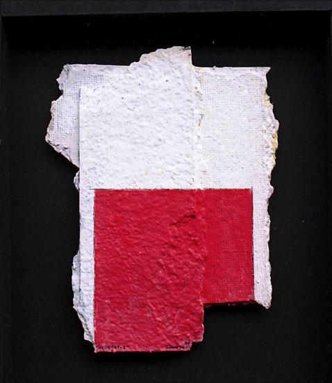 Construcción en papel hecho a mano y pintado al óleo encolado a cartón
