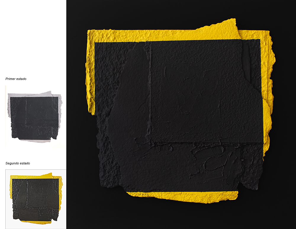Construcción en papel hecho a mano y pintado al óleo encolado a tabla