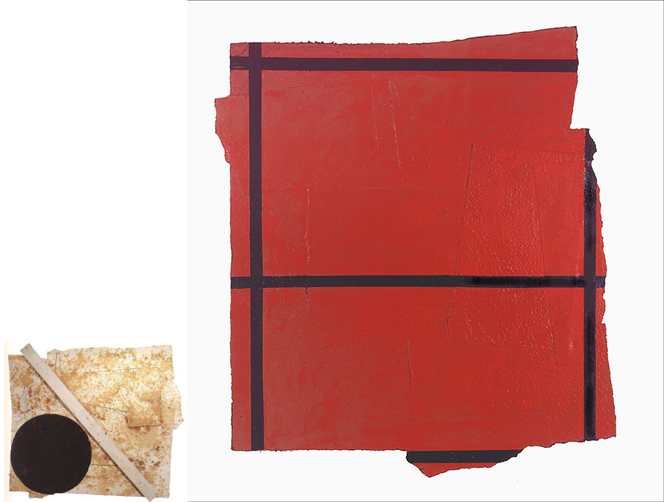 Construcción en papel hecho a mano y pintado al óleo encolado a tabla