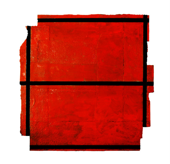 Construcción en papel hecho a mano y pintado al óleo encolado a tabla