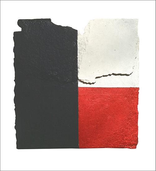 Construcción en papel hecho a mano y pintado al óleo encolado a tabla