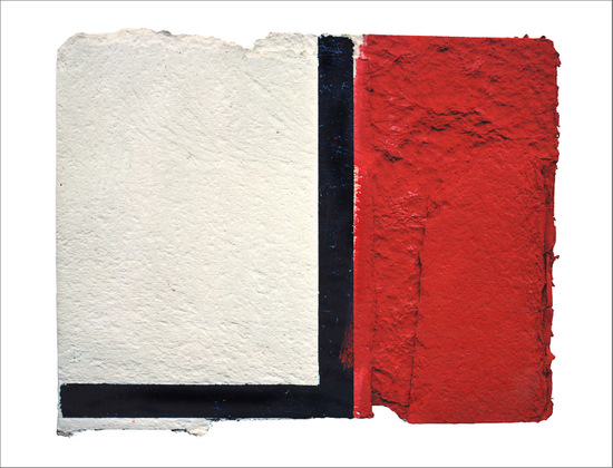 Construcción en papel hecho a mano y pintado al óleo encolado a tabla