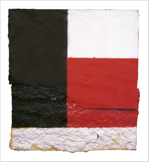 Construcción en papel hecho a mano y pintado al óleo encolado a tabla