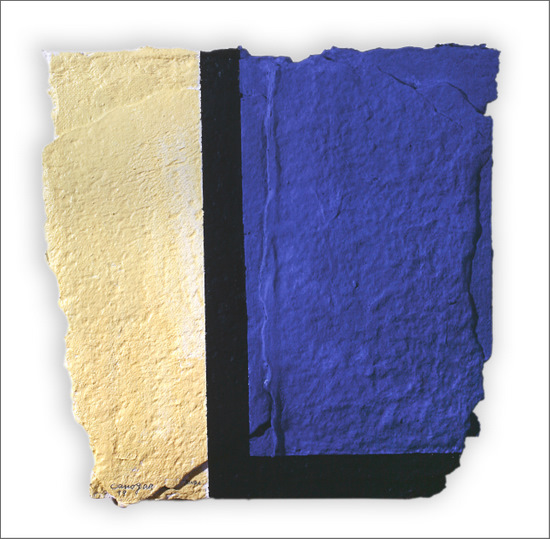 Construcción en papel hecho a mano y pintado al óleo encolado a tabla