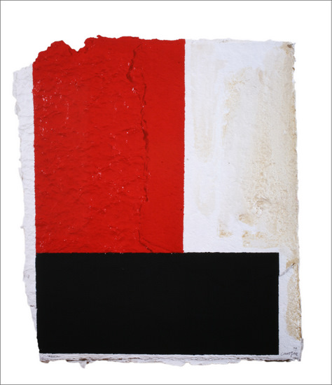 Construcción en papel hecho a mano y pintado al óleo encolado a tabla