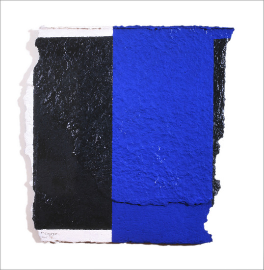Construcción en papel hecho a mano y pintado al óleo encolado a tabla