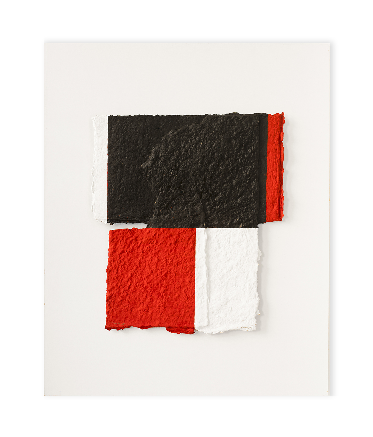 Construcción en papel hecho a mano y pintado al óleo encolado a tabla