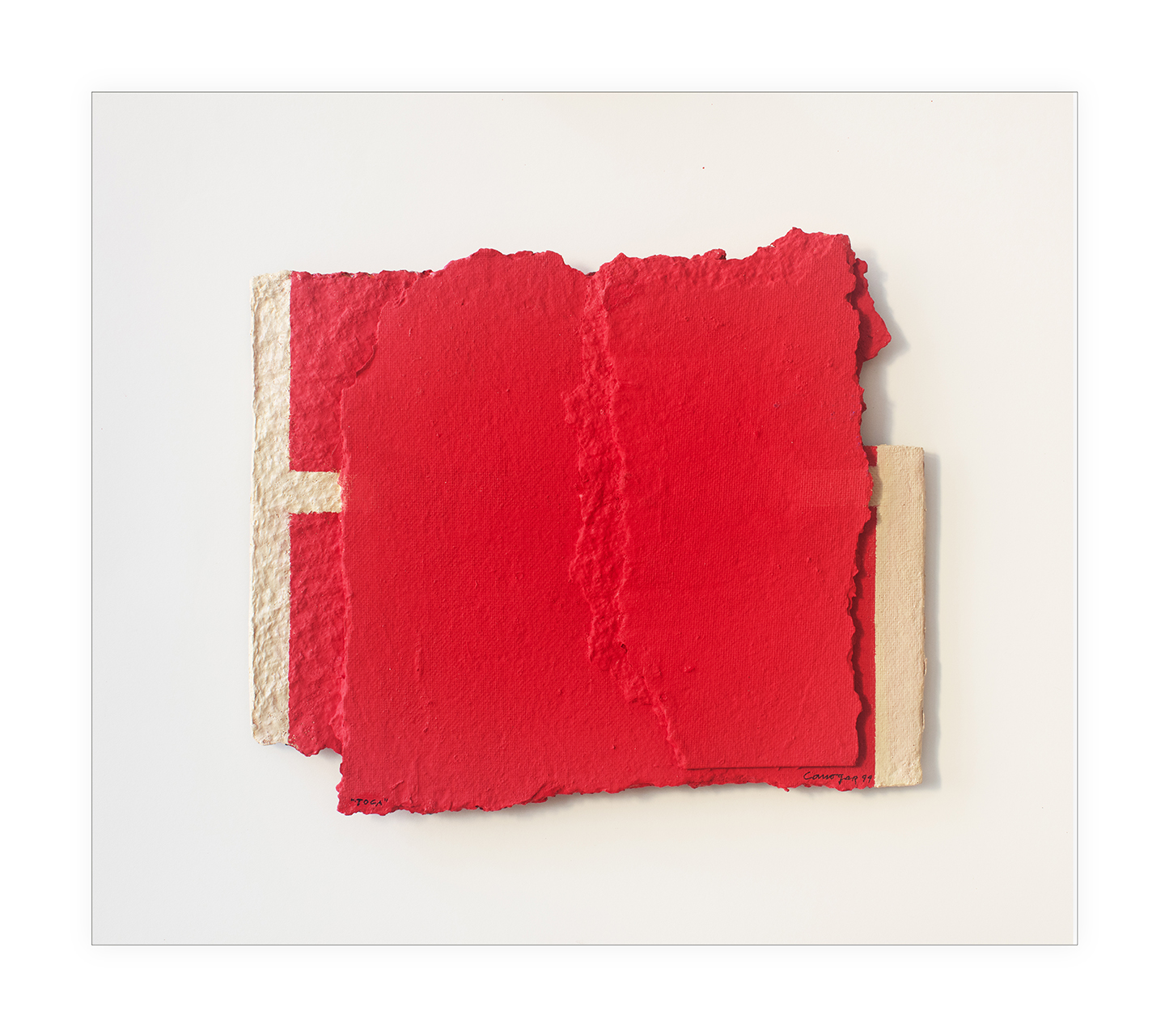 Construcción en papel hecho a mano y pintado al óleo encolado a tabla