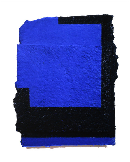Construcción en papel hecho a mano y pintado al óleo encolado a tabla