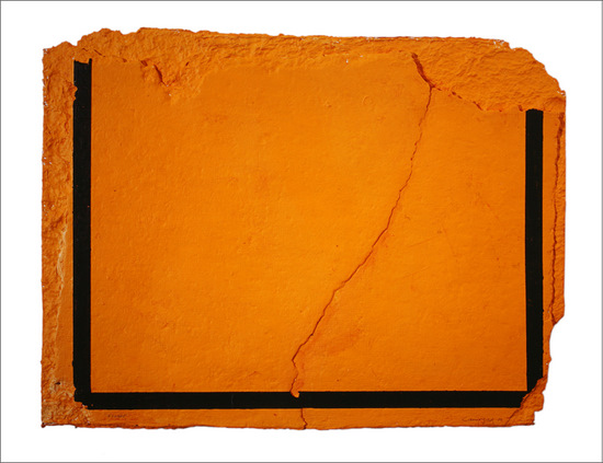 Construcción en papel hecho a mano y pintado al óleo encolado a tabla