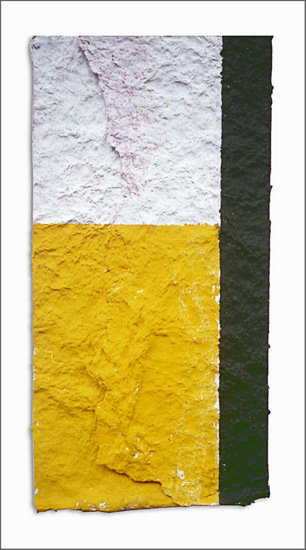 Construcción en papel hecho a mano y pintado al óleo encolado a tabla