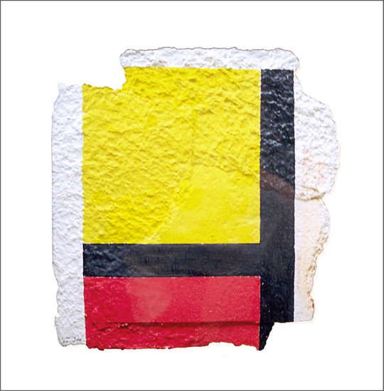 Construcción en papel hecho a mano y pintado al óleo encolado a tabla