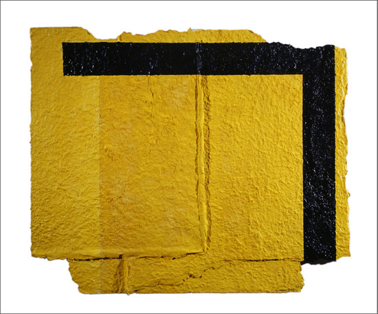 Construcción en papel hecho a mano y pintado al óleo encolado a tabla