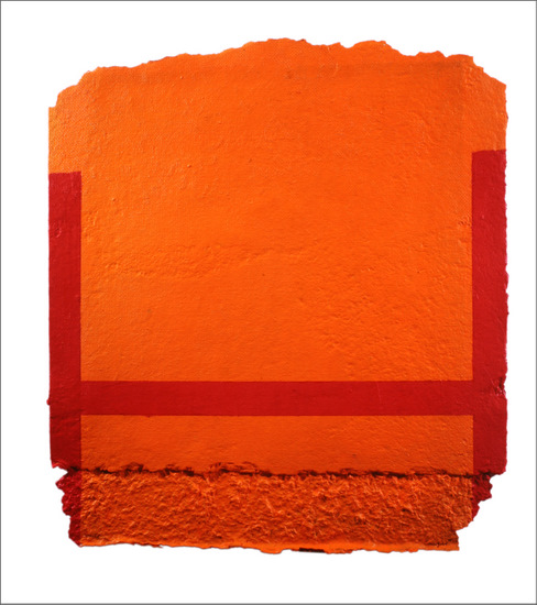 Construcción en papel hecho a mano y pintado al óleo encolado a tabla