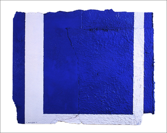 Construcción en papel hecho a mano y pintado al óleo encolado a tabla