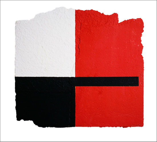 Construcción en papel hecho a mano y pintado al óleo encolado a tabla