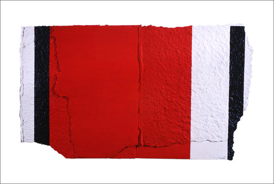 Construcción en papel hecho a mano y pintado al óleo encolado a tabla