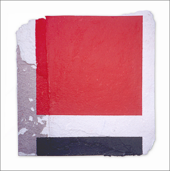 Construcción en papel hecho a mano y pintado al óleo encolado a tabla