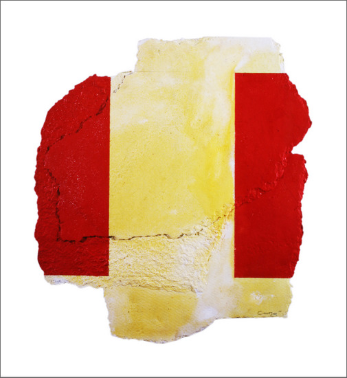 Construcción en papel hecho a mano y pintado al óleo encolado a tabla