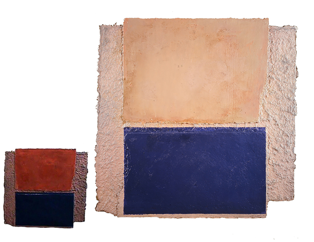 Construcción en papel hecho a mano y pintado al óleo encolado a tabla