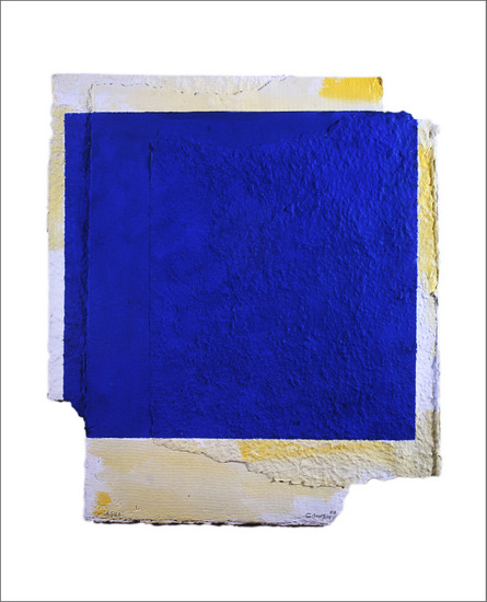 Construcción en papel hecho a mano y pintado al óleo encolado a tabla