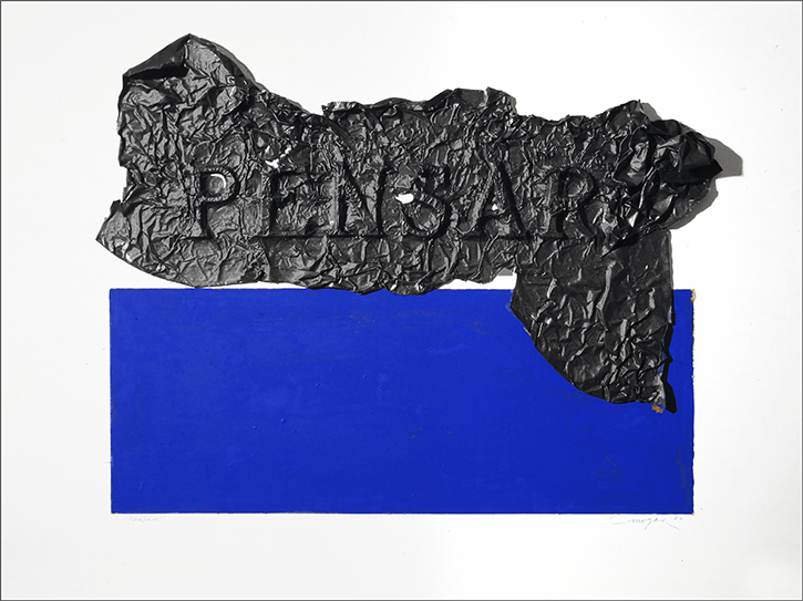 Fechado y firmado zona inf. dcha.: “00 / Canogar”; inscripción zona inf. izda.: “‘Pensar’”
