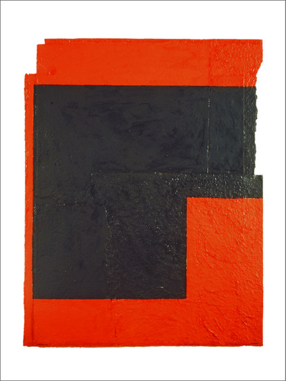 Construcción en papel hecho a mano y pintado al óleo encolado a tabla
