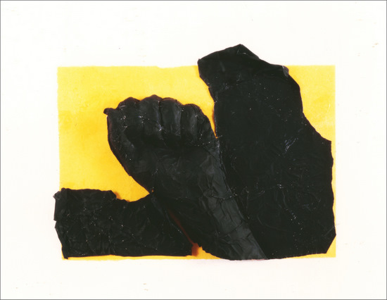 Construcción en aluminio y collage de papel sobre tabla