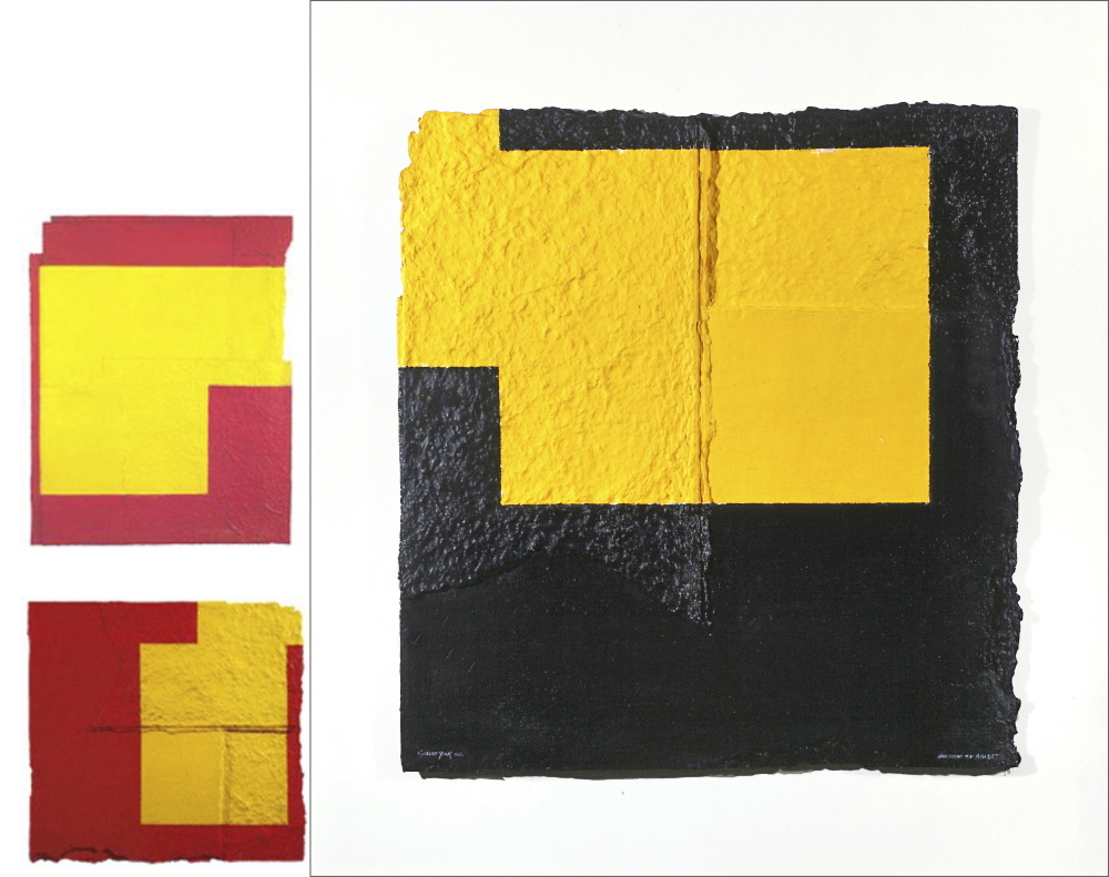Construcción en papel hecho a mano y pintado al óleo encolado a tabla