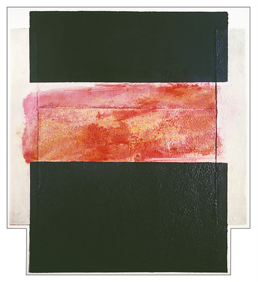 Construcción en papel hecho a mano y pintado al óleo encolado a tabla