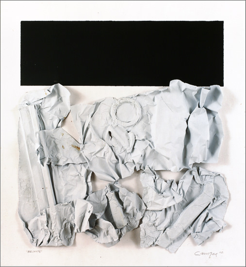 Fechado y firmado áng. inf. dcho.: “02 / Canogar”; inscripción zona inf. izda.: “‘BESANTE’”