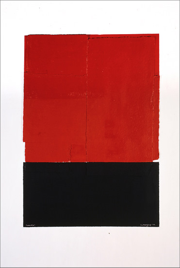 Collage de papel hecho a mano y óleo sobre cartón pluma