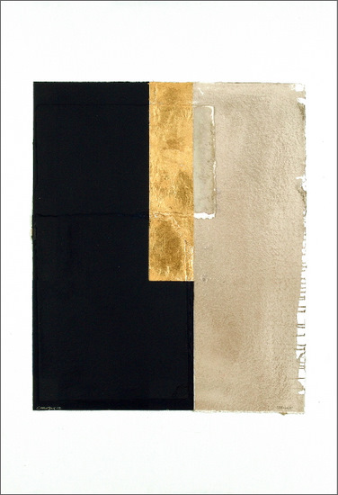 Construcción en papel hecho a mano y pintado al óleo con collage de pan de oro encolado a cartón plu