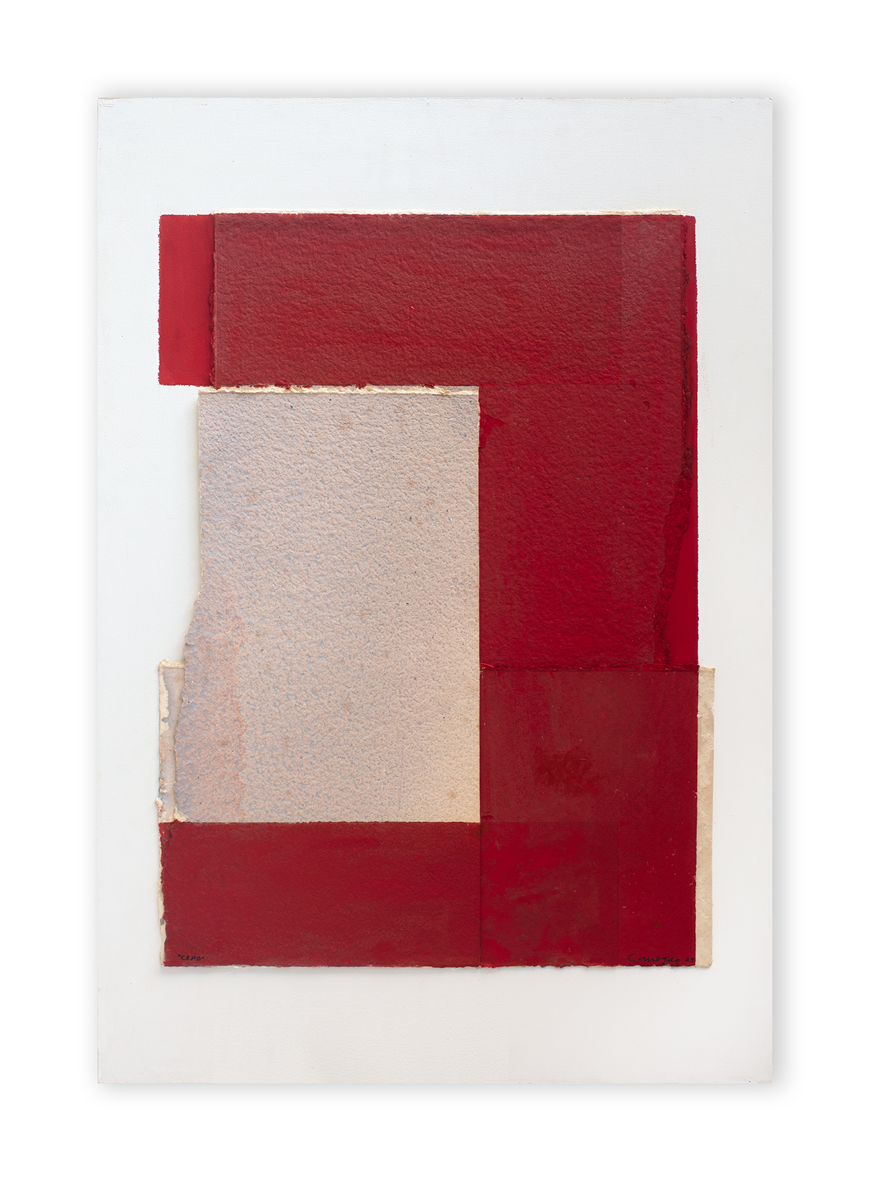 Construcción en papel hecho a mano y pintado al óleo encolado a tabla